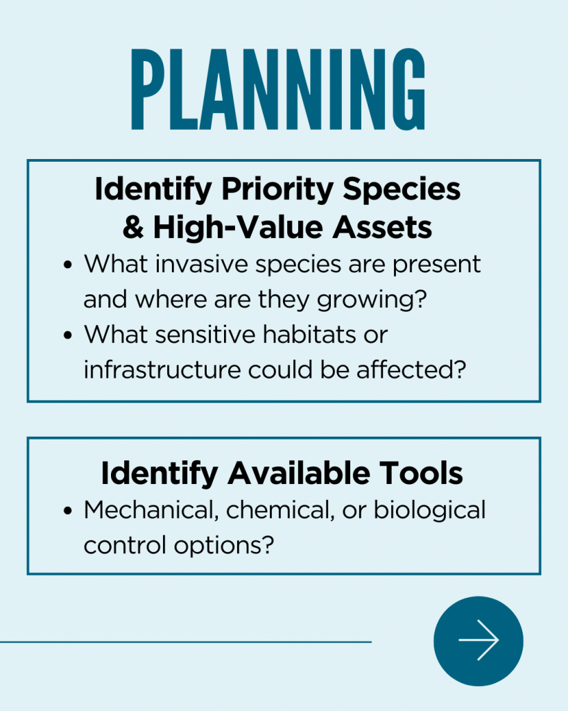 The reason(s) you want to manage IAV will help determine the most appropriate approach. Step back and think about why you are interested in managing IAV. What is the purpose of the project? Consider your management goal, such as habitat enhancement for a particular special status species, water conveyance, or recreational access. Brainstorm your “why” with your team.
